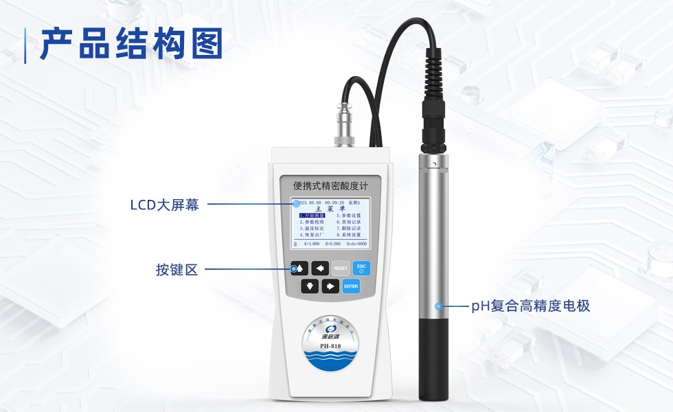 主機1臺,pH復合高精度電極1支,溫度探頭1支,pH校正試劑1套,主機保護套1個,便攜箱1個,說明書、合格證、保修卡各1份。